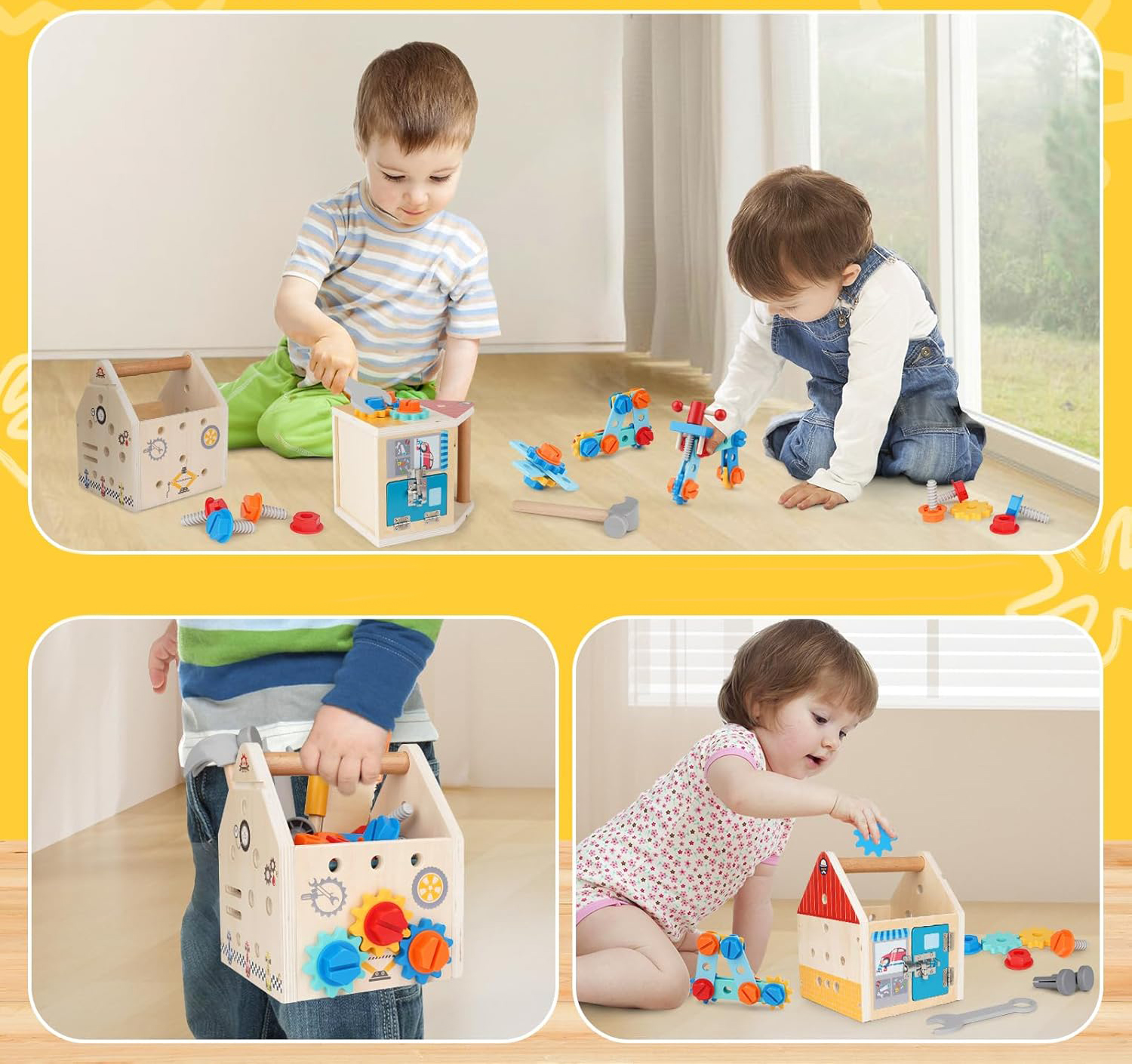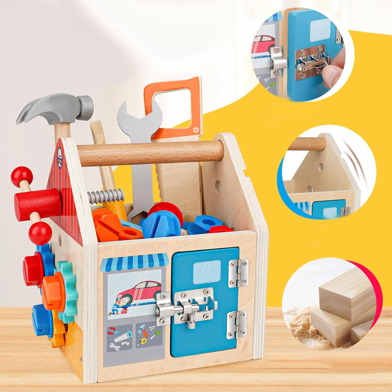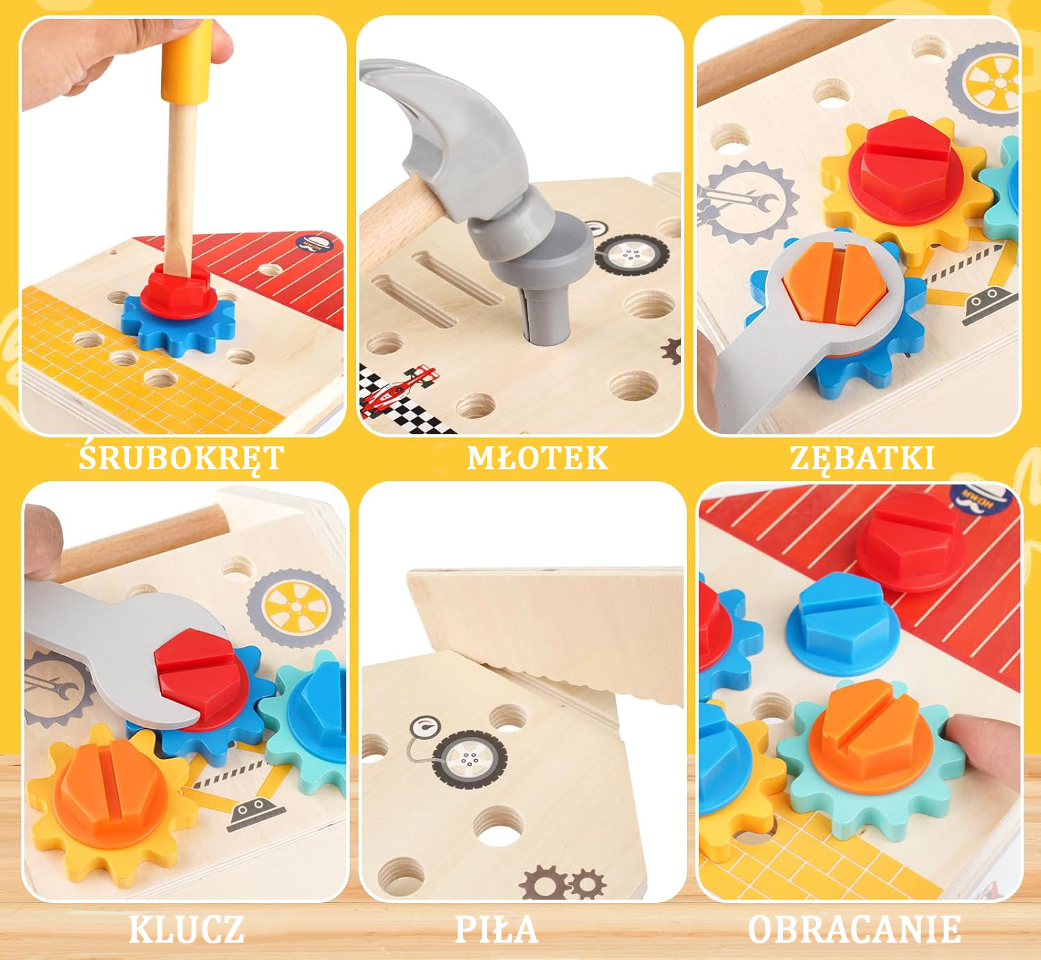 DREWNIANY DOMEK DO SKRĘCANIA Z NARZĘDZIAMI DLA DZIECI