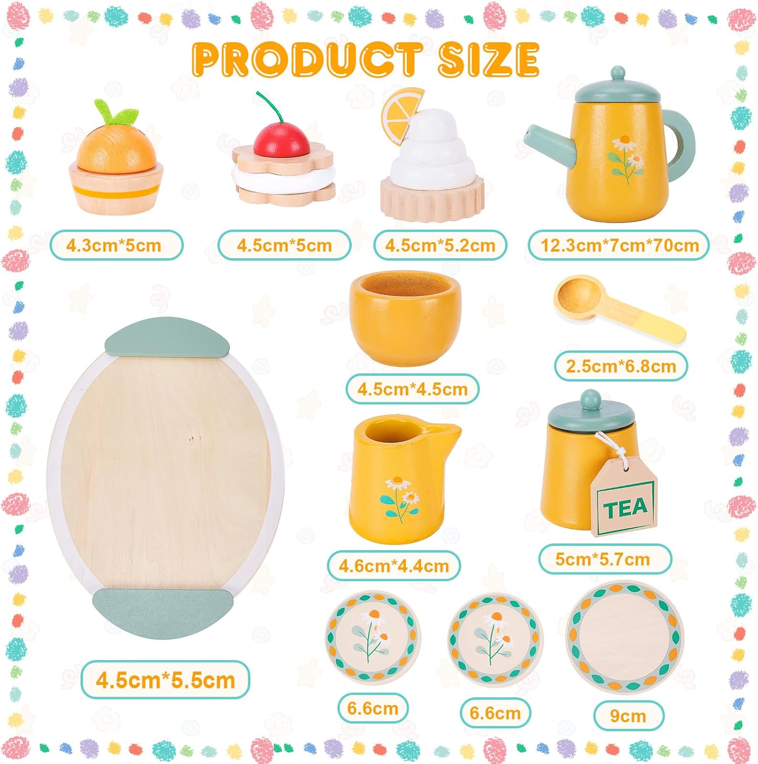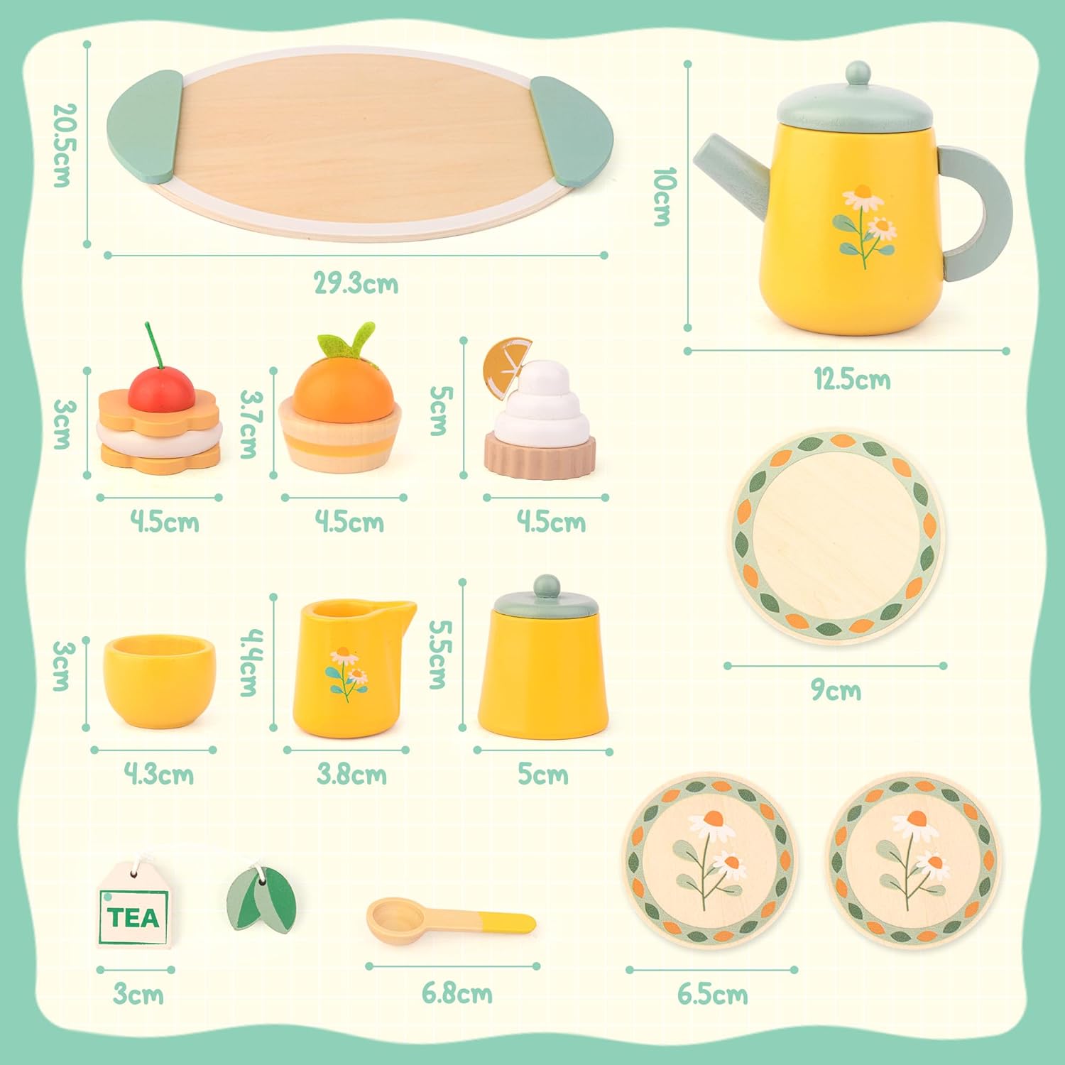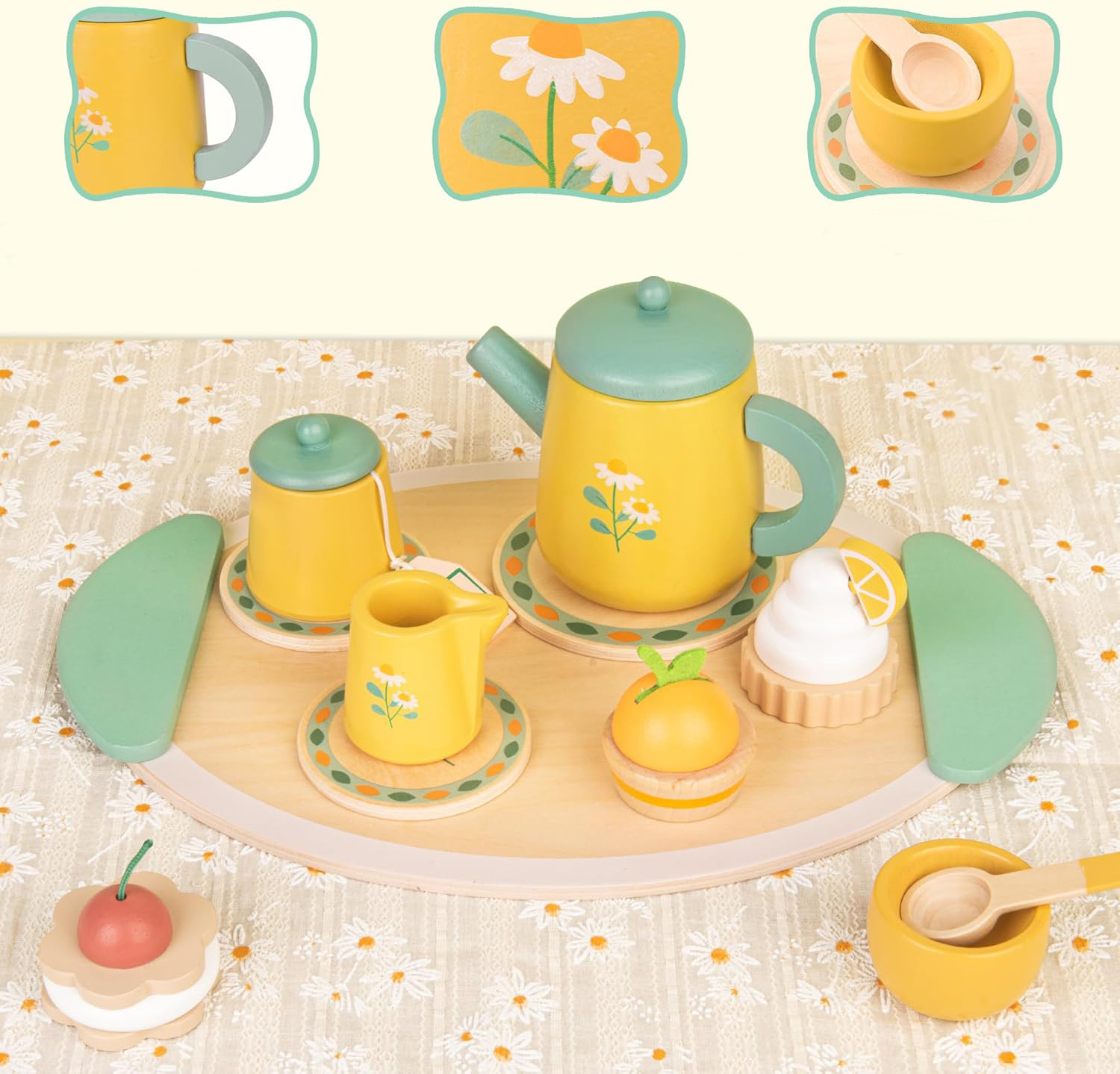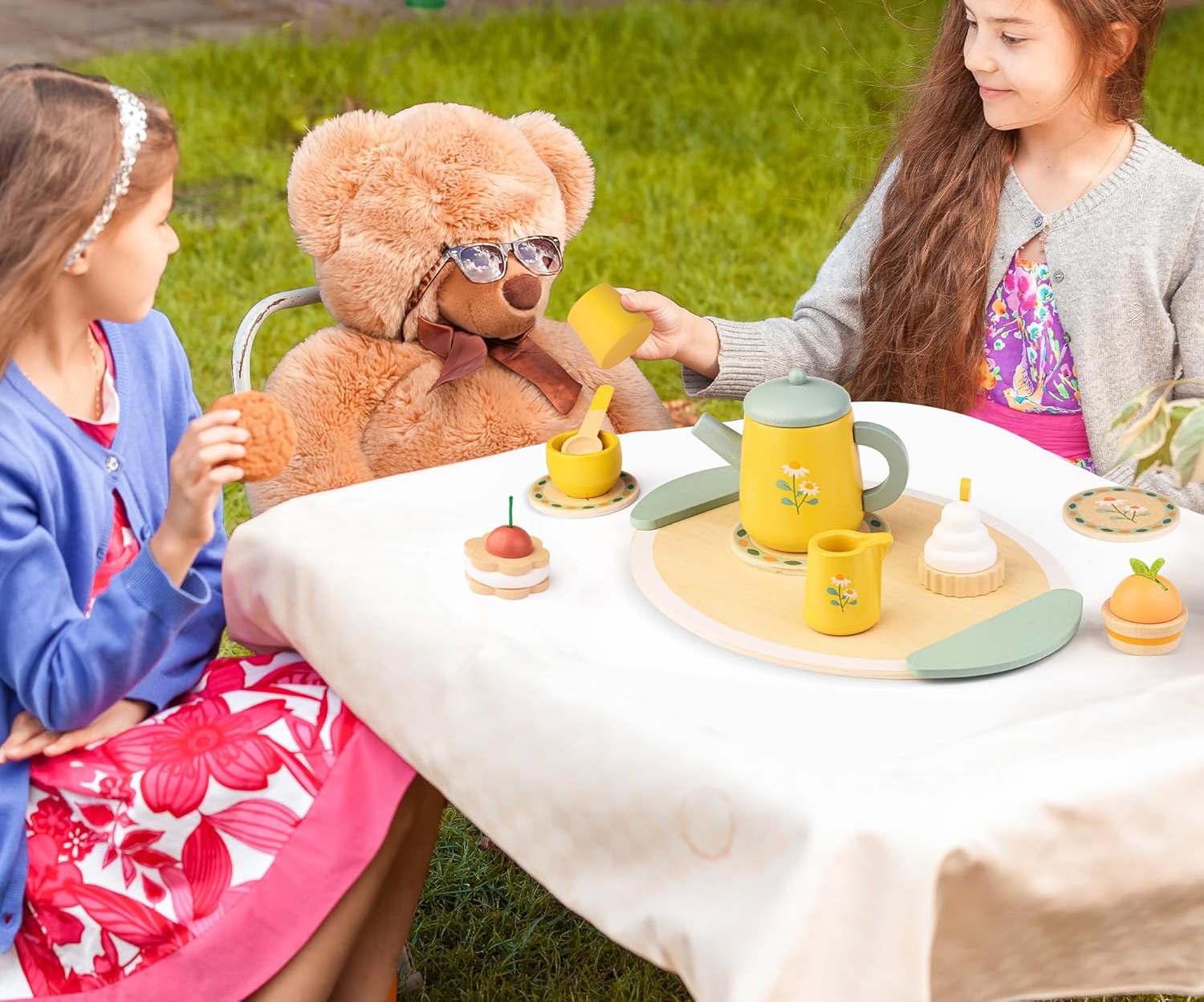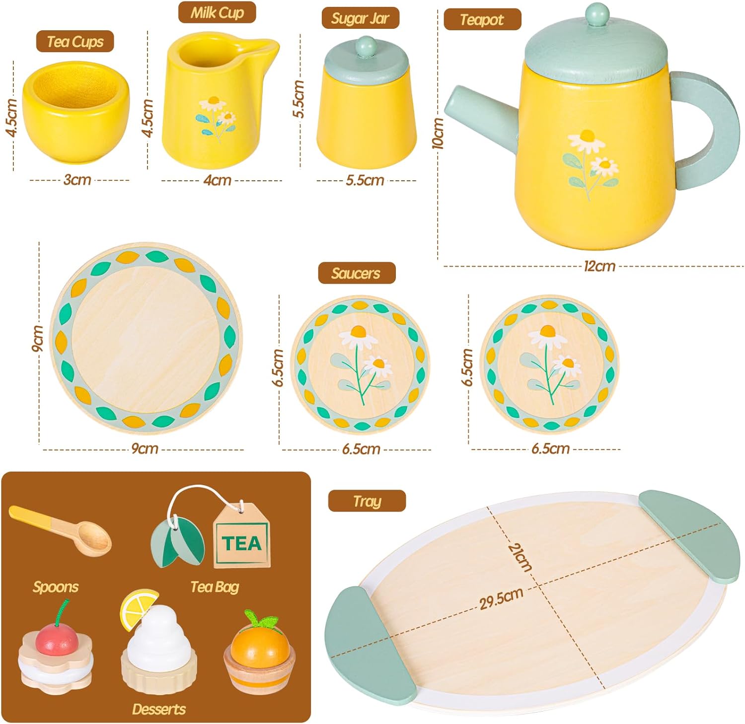 DREWNIANY ZESTAW SERWIS DO HERBATY Z CIASTEM DLA DZIECI
