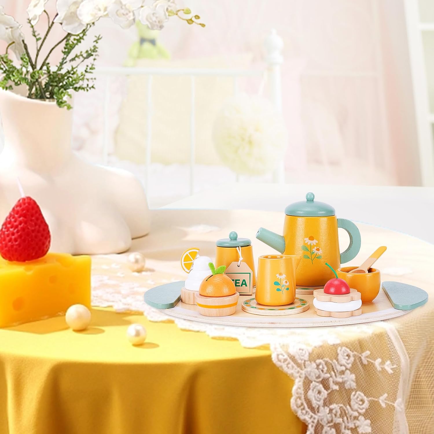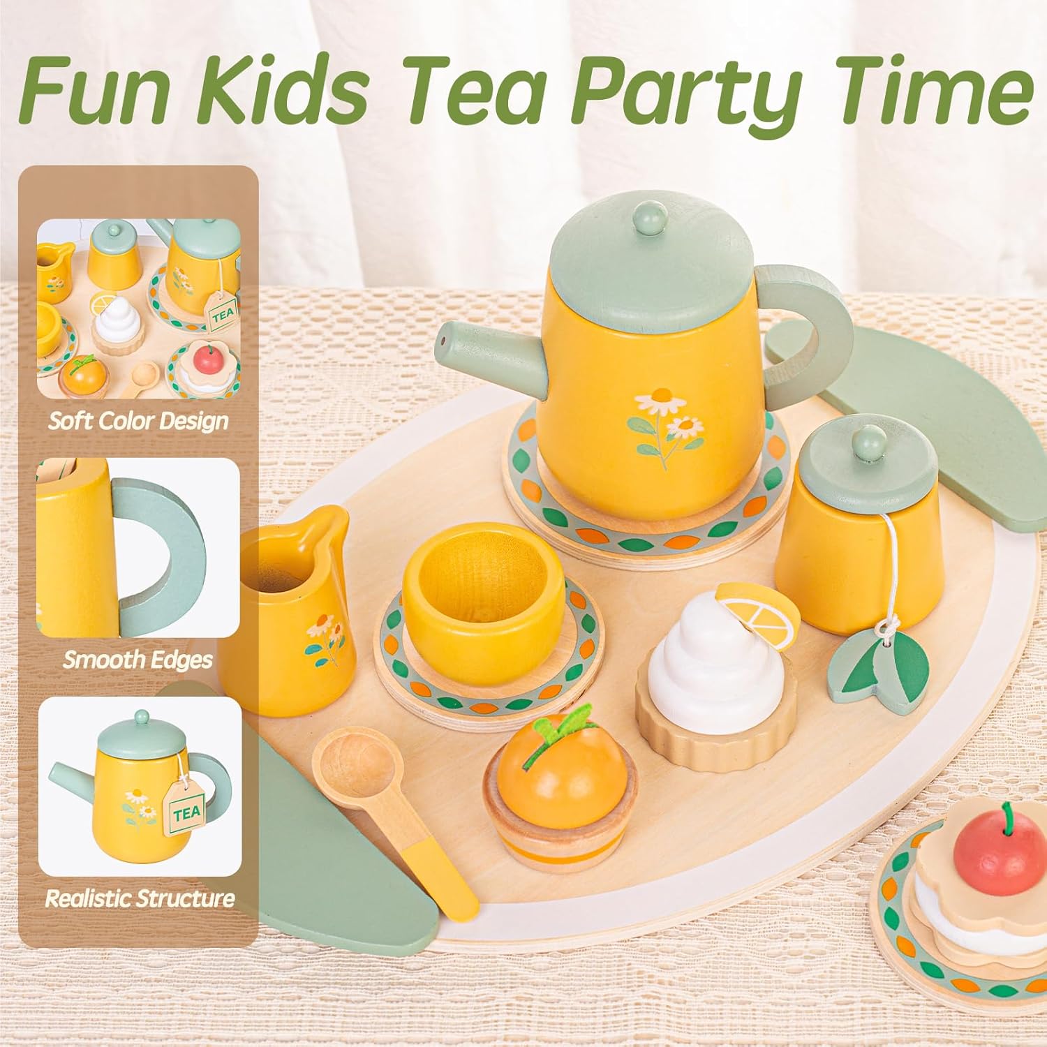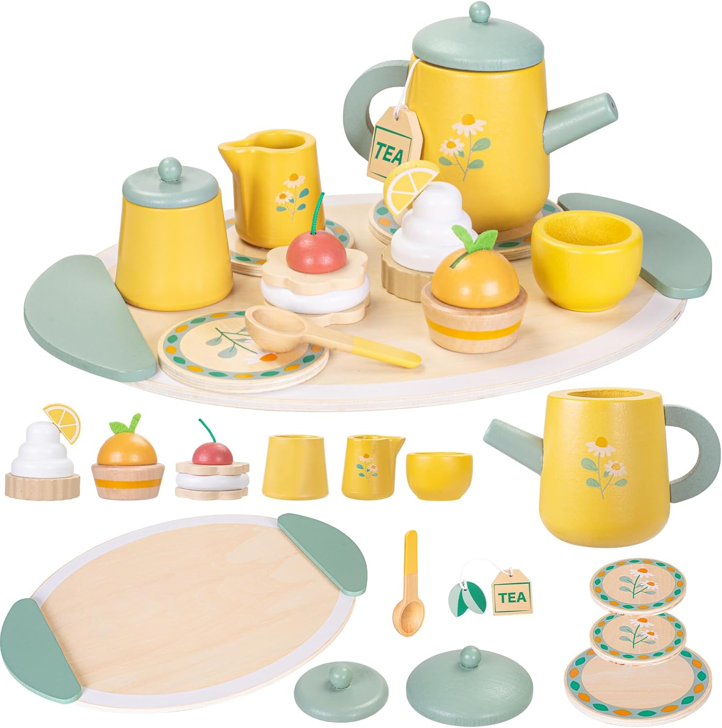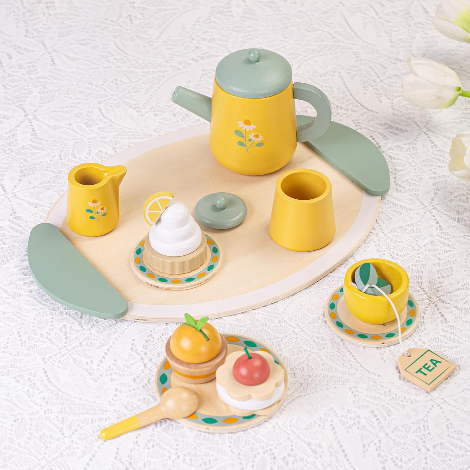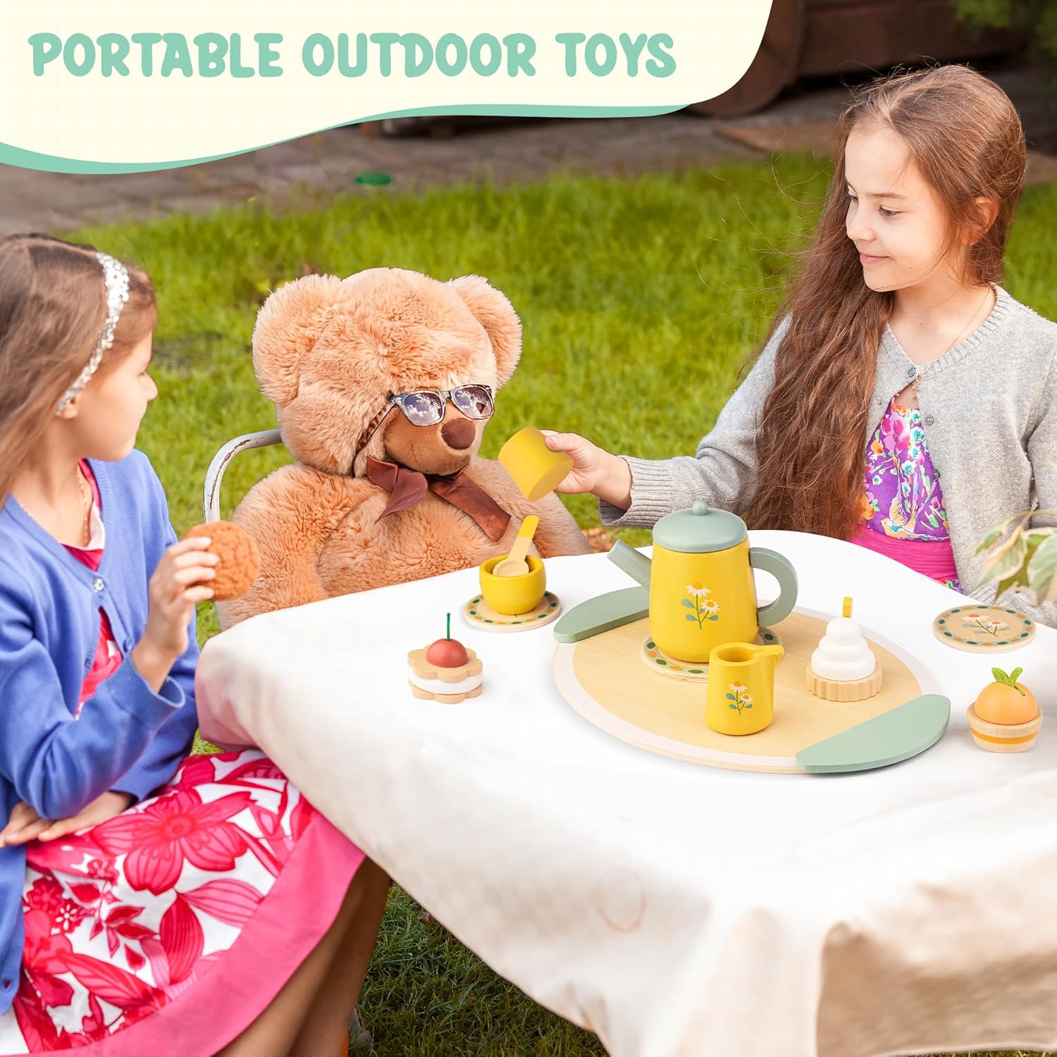 DREWNIANY ZESTAW SERWIS DO HERBATY Z CIASTEM DLA DZIECI