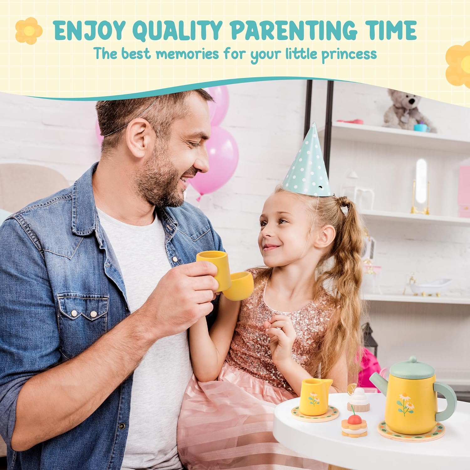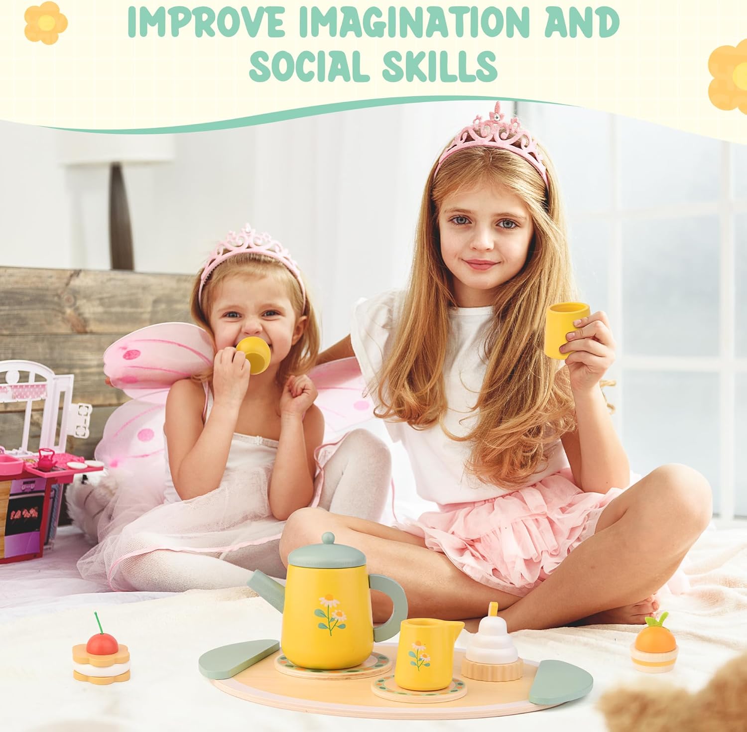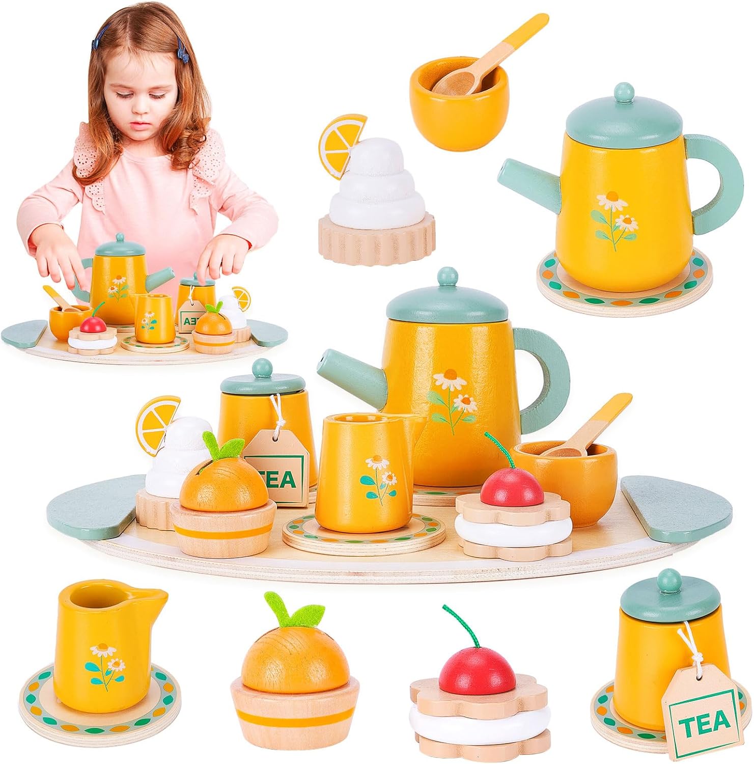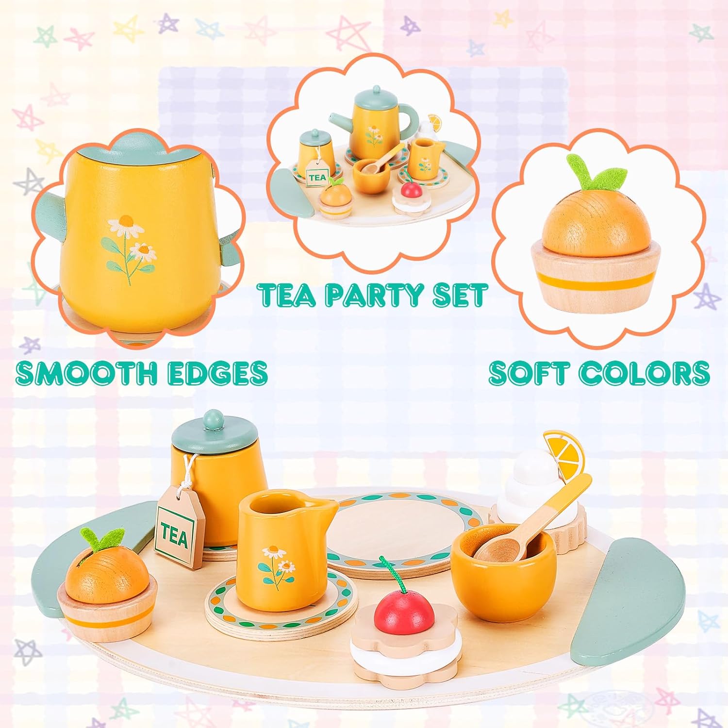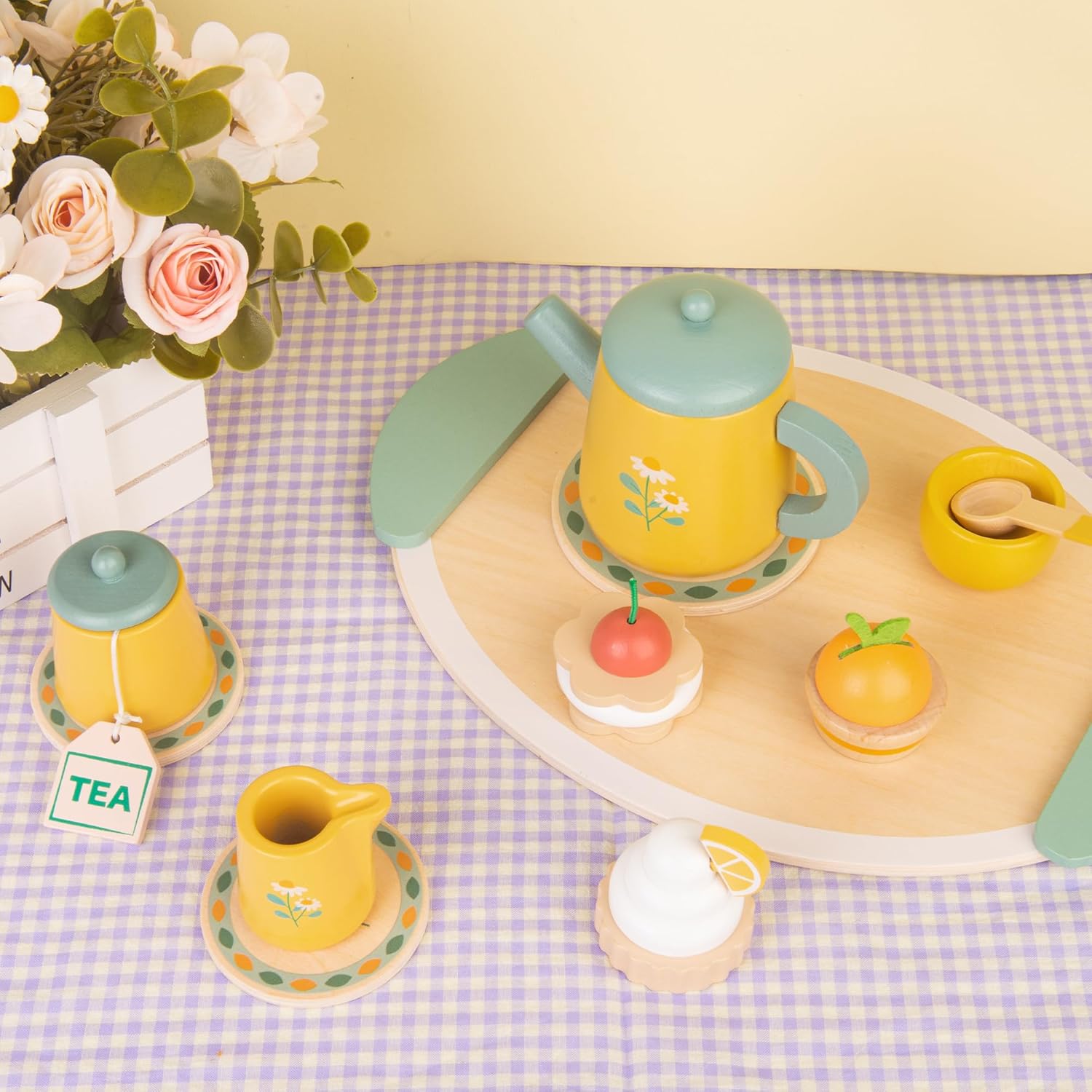 DREWNIANY ZESTAW SERWIS DO HERBATY Z CIASTEM DLA DZIECI