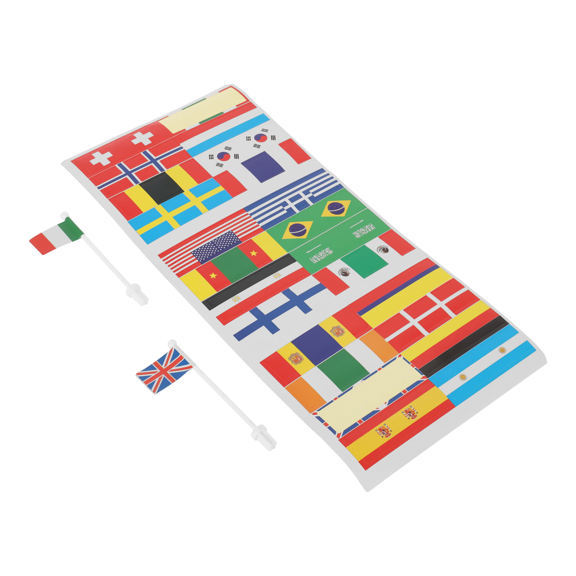 Do zestawu dołączone są aż 24 flagi, co pozwala graczom na wybranie narodowości swojej drużyny. Ciekawym elementem, który nada wyjątkowego charakteru zabawce, będzie oklejenie boiska pozostałymi flagami.