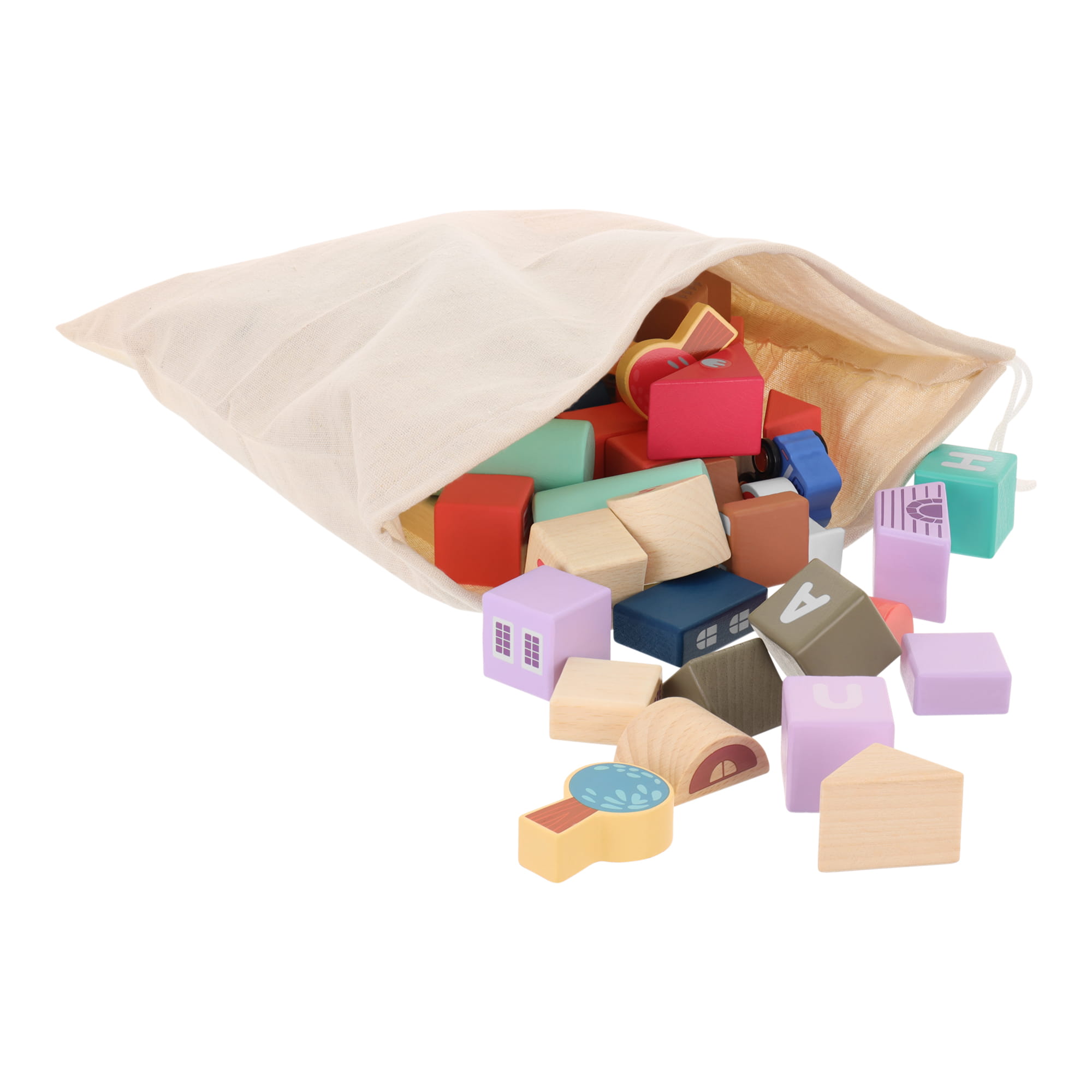 DREWNIANE KLOCKI / MIASTO / AUTA / 115 KLOCKÓW / PUZZLE / WOREK