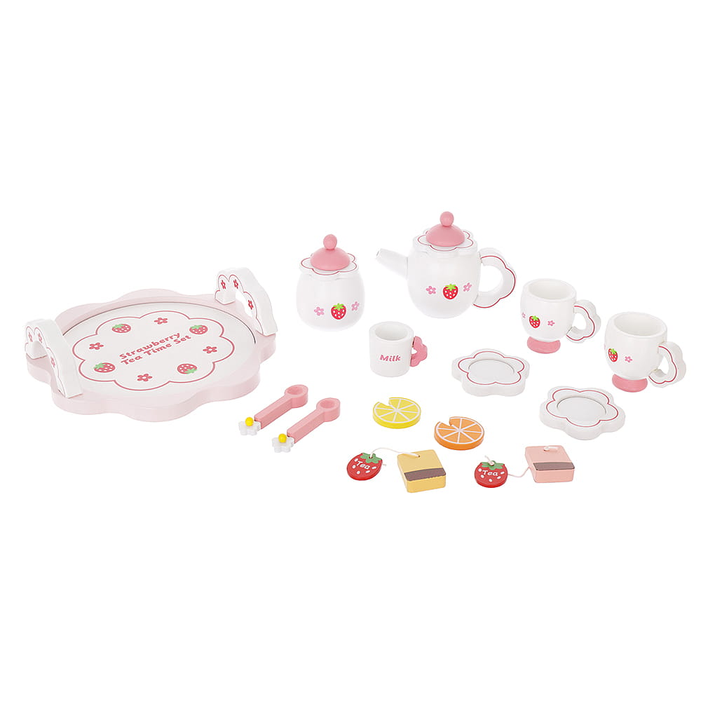 W zestawie znajduje się aż 16 elementów, z których pomocą przygotować można przepyszną kawę lub herbatę dla każdego. Komplet ma w sobie wiele ciekawych akcesoriów takich jak herbata, plasterki cytryny, taca, łyżeczki, podstawki do filiżanek i wiele innych. Można z nich stworzyć wiele ciekawych wariantów zabawy. Ograniczeniem jest jedynie wyobraźnia.