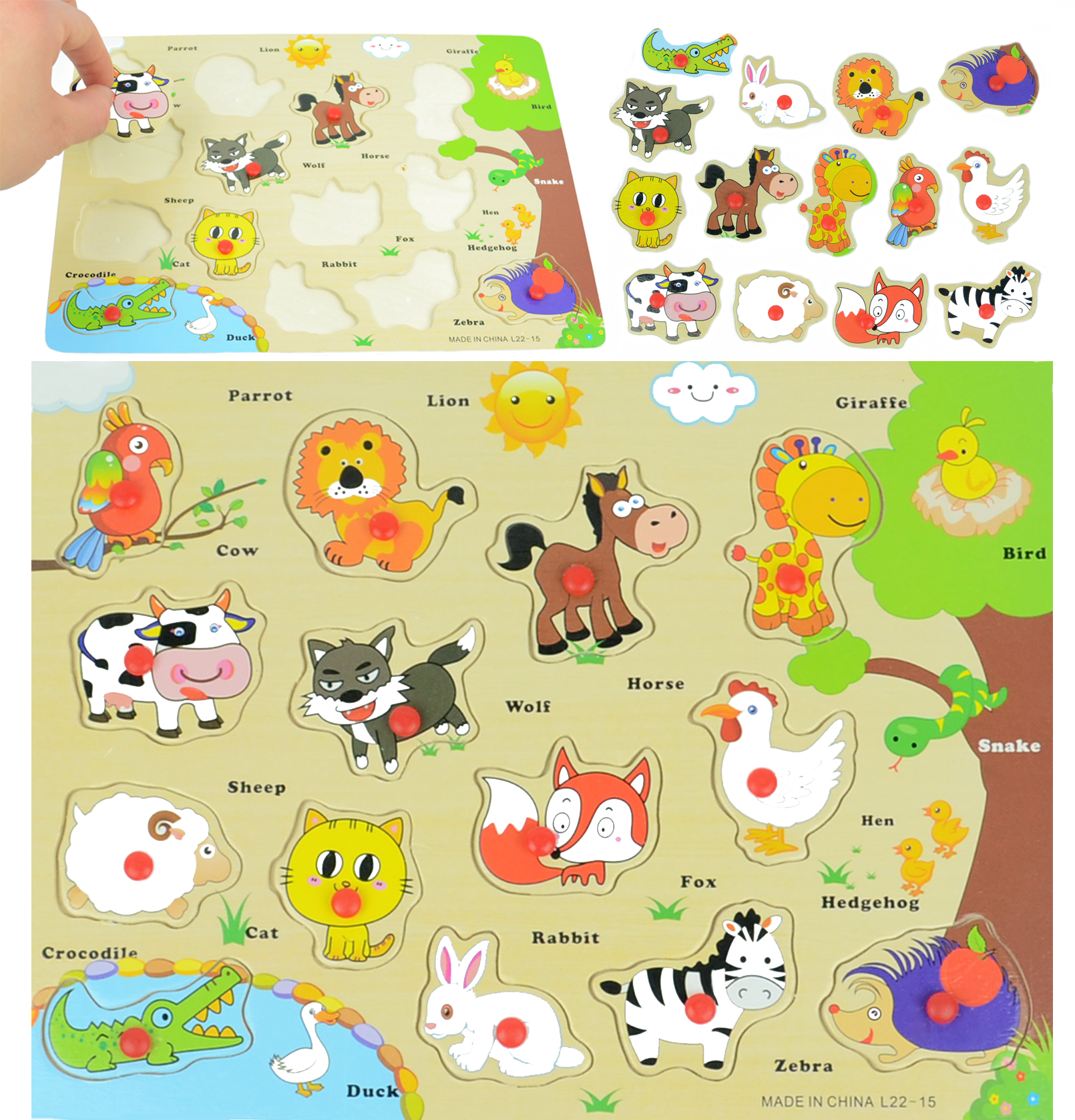 LT307 UKŁADANKA PUZZLE DREWNIANE ZWIERZĄTKA PINEZKI