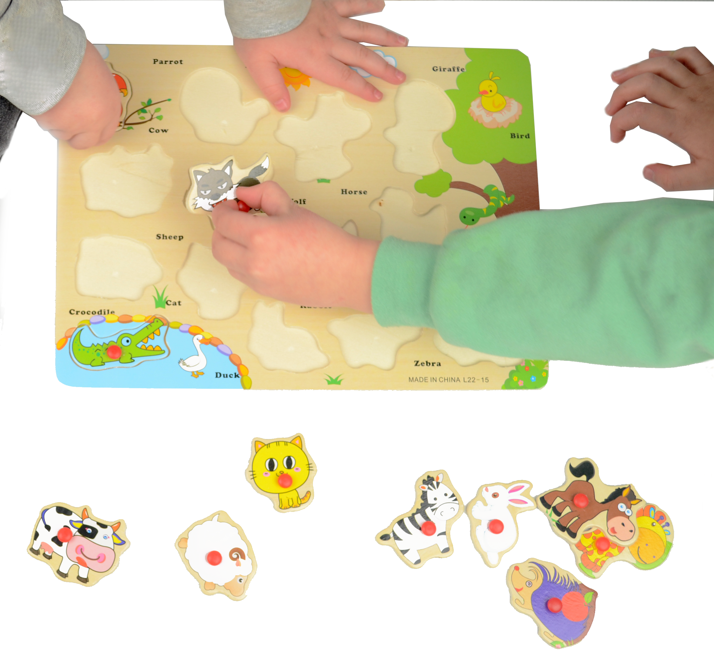 - dla najmłodszych dzieci układanka może służyć jako zabawka do nauki nazw poszczególnych zwierząt. Dziecko poprzez rozpoznawanie kształtów, kolorów oraz obrazków rozwija swoje umiejętności poznawcze,