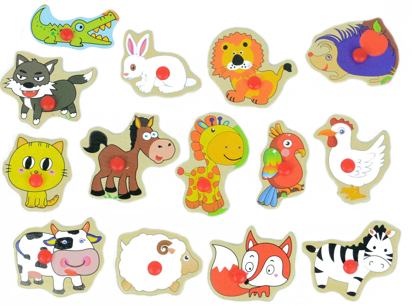 - 14 elementów przedstawiających zwierzęta.