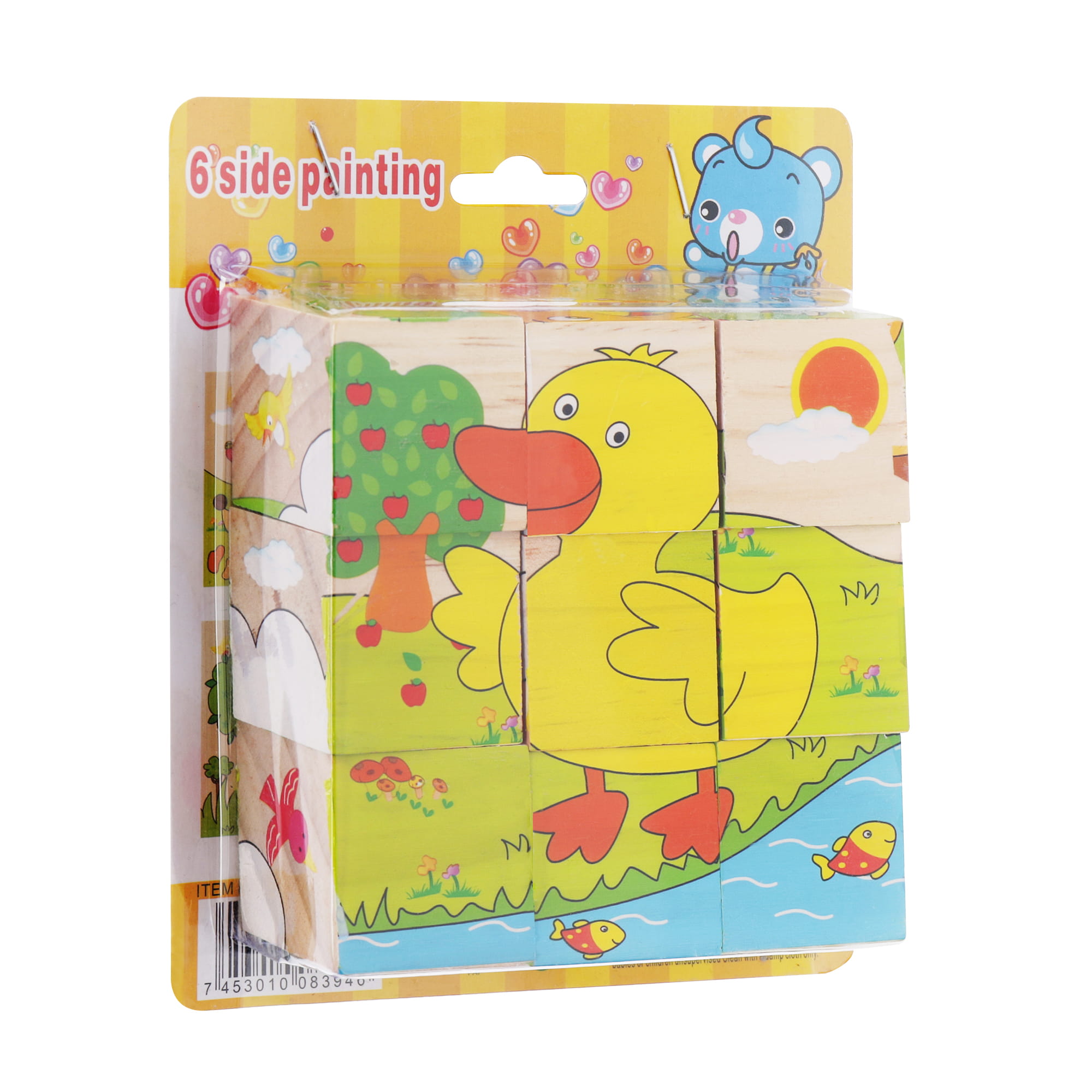 LT321 EDUKACYJNE DREWNIANE KLOCKI PUZZLE UKŁDANKA 6w1 MIX WZORÓW