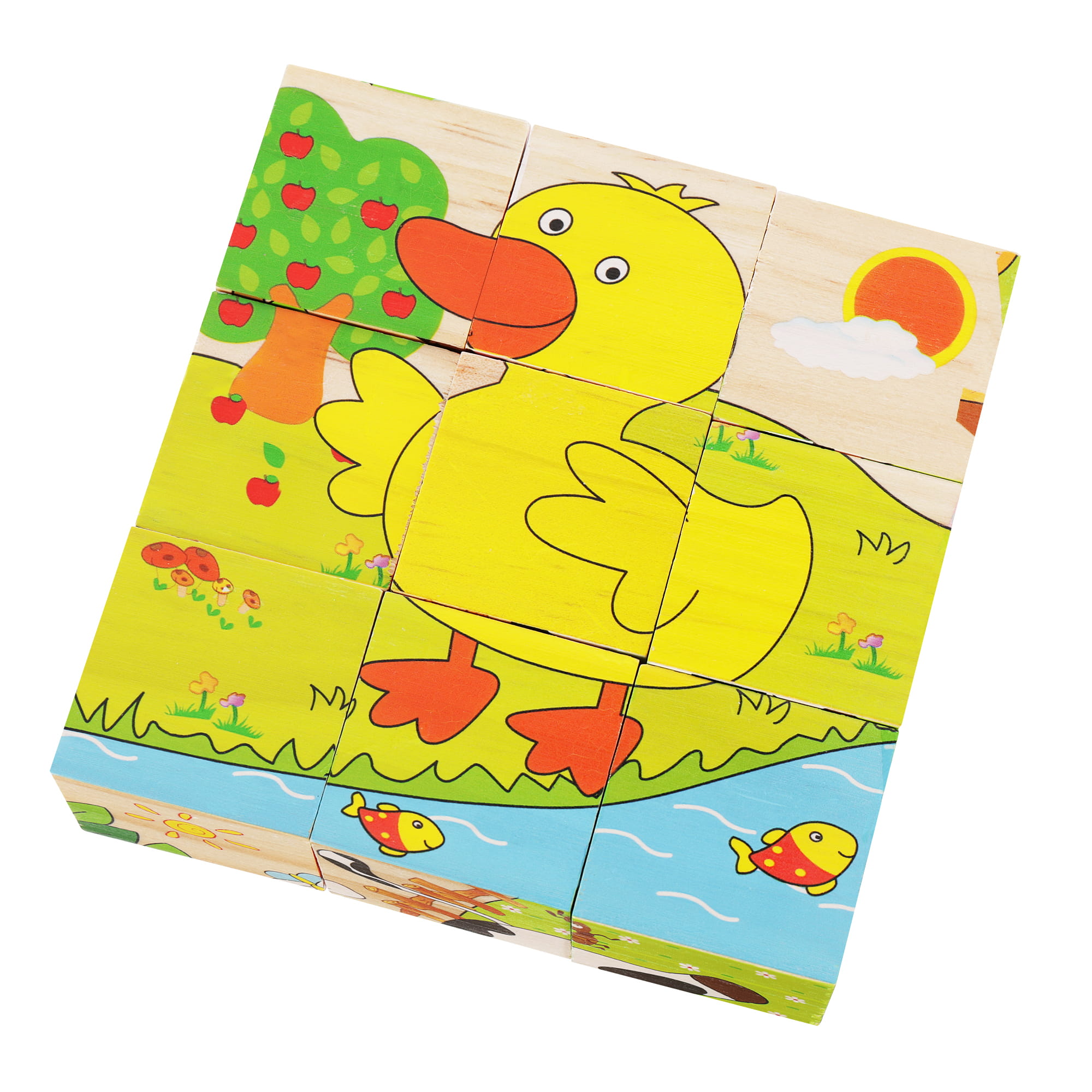 Ten niepozorny zestaw klocków gwarantuje niezliczone godziny wyśmienitej zabawy. Wszystko dzięki 6 różnym obrazkom znajdującym się na kostkach. Dzięki temu maluch nie znudzi się układaniem, jak to zazwyczaj bywa przy zwykłej jednostronnej układance.