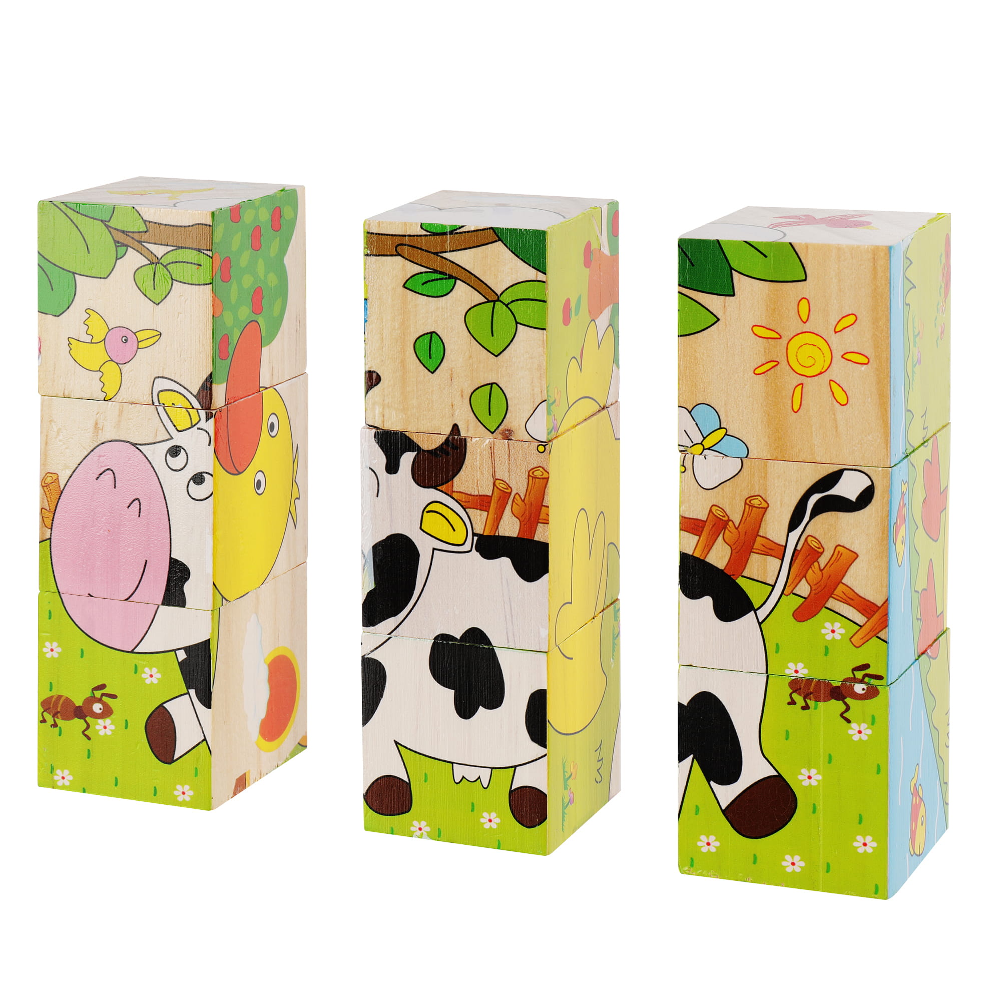 WYJĄTKOWE DREWNIANE KLOCKI / AŻ 6 OBRAZKÓW / FANTASTYCZNA ZABAWA GWARANTOWANA / MIX WZORÓW / OWOCE / WARZYWA / ZWIERZĘTA / POJAZDY / WYSYŁKA LOSOWA