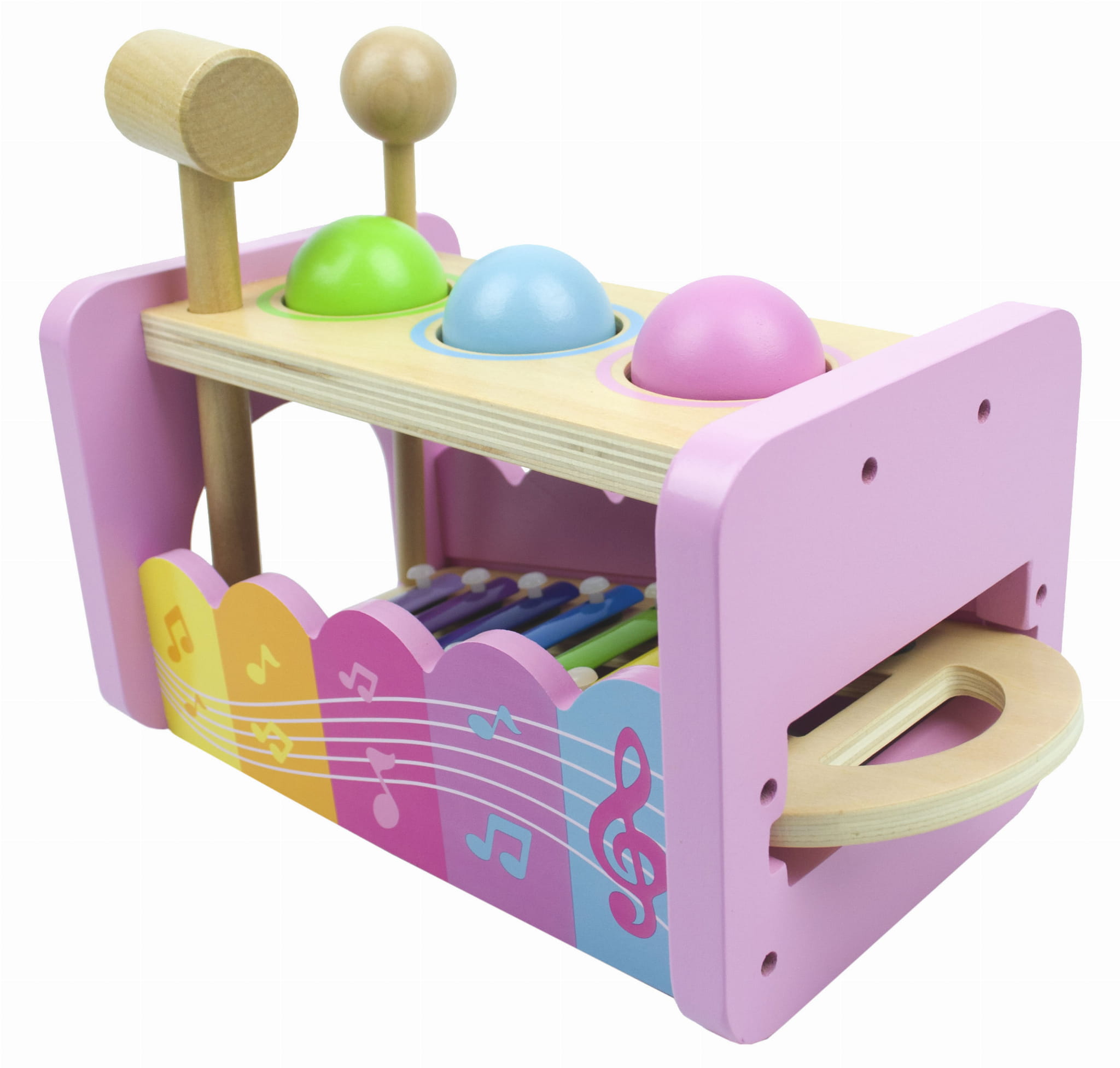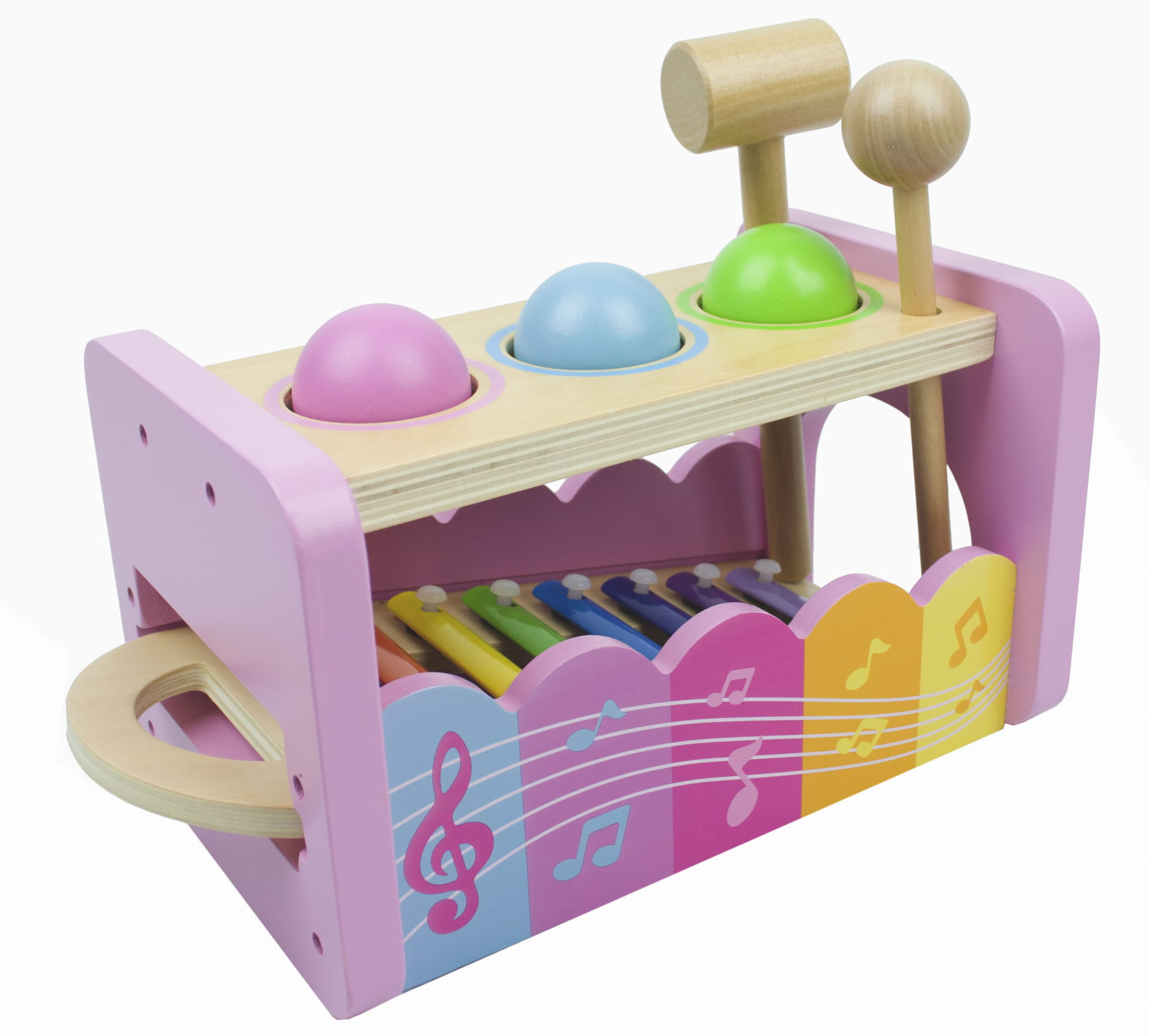 LT328 LANDTOYS ZABAWKA DREWNIANA WYBYJAK CYMBAŁKI Z MŁOTECZKIEM RÓŻOWE