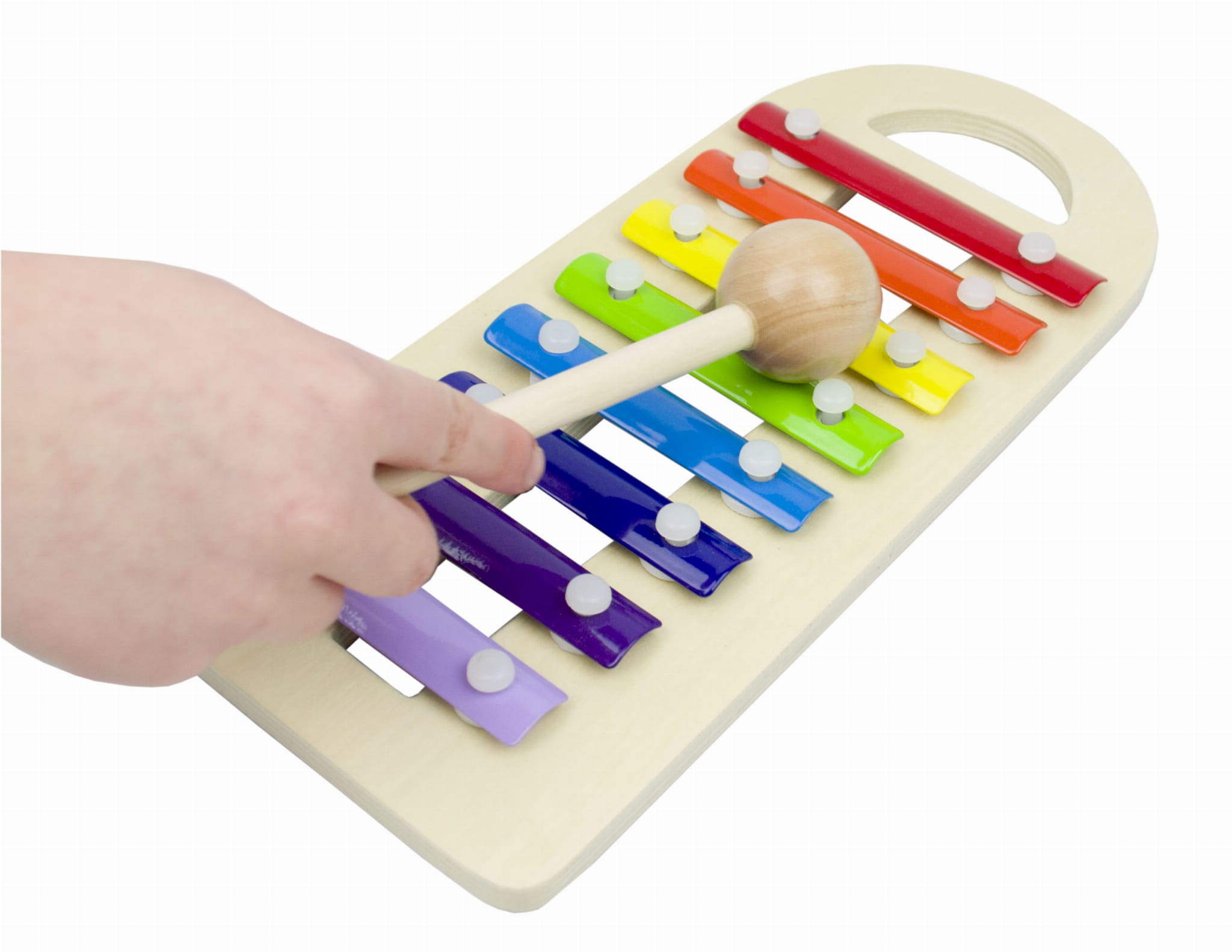 Cymbałki znajdujące się w zestawie mogą być zarówno częścią wybijaka, jak i osobną zabawką, dzięki której maluch stworzy swoje pierwsze melodie. Gra na cymbałkach wymaga precyzyjnych ruchów, co pomaga w doskonaleniu zdolności manualnych i koordynacji ruchowej. Instrument posiada wygodny uchwyt do trzymania.