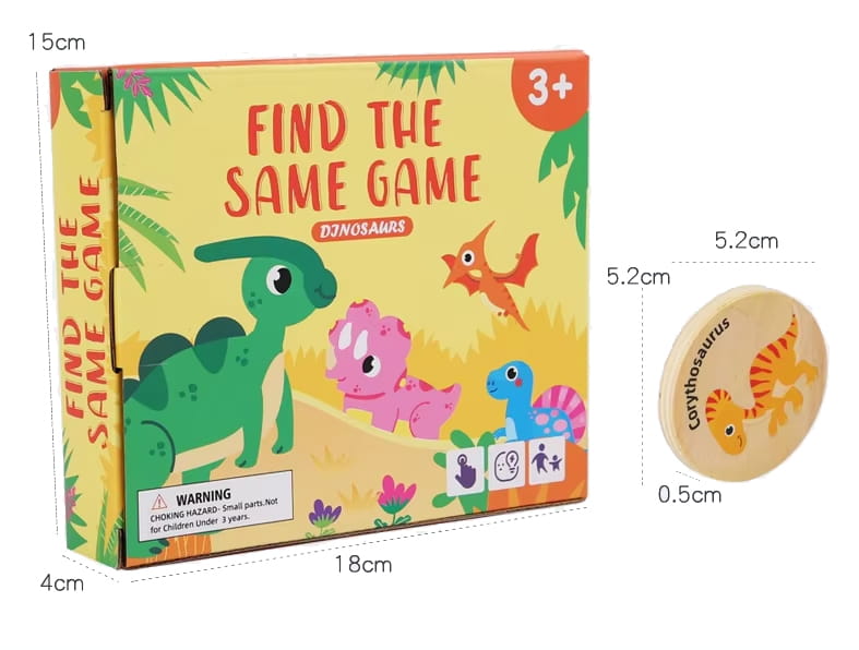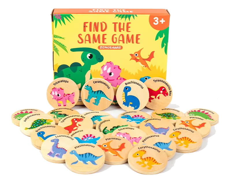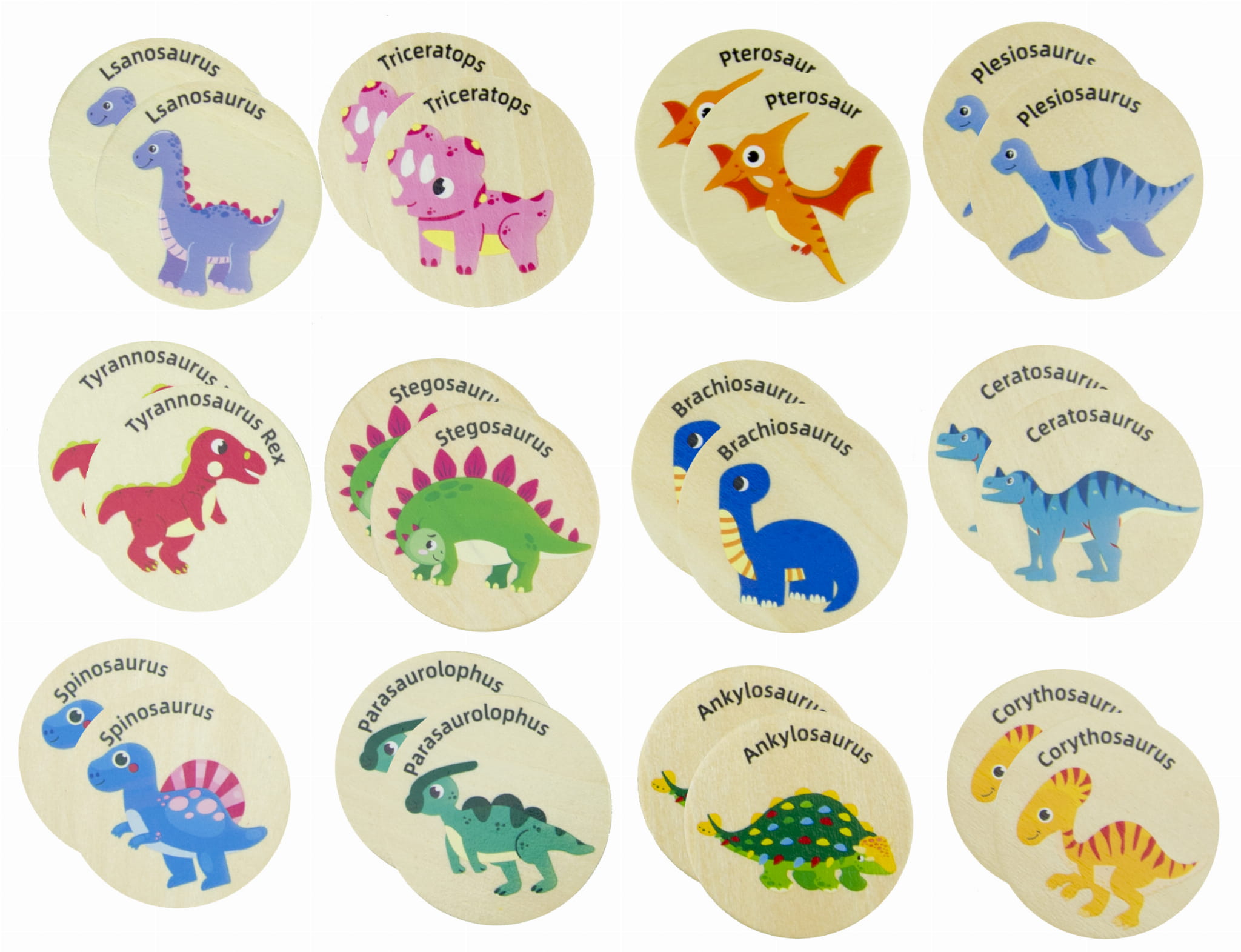 Odnajdywanie pasujących krążków to zabawa pełna wyzwań i radości. Nasz zestaw posiada 12 par prehistorycznych stworzeń jakimi są: triceratops, tyranozaur, pterozaur, stegozaur, plezjozaur, spinozaur, ankylozaur, parazaurolof, korytozaur, ceratozaur, isanozaur. Dzieci uwielbiają dinozaury!