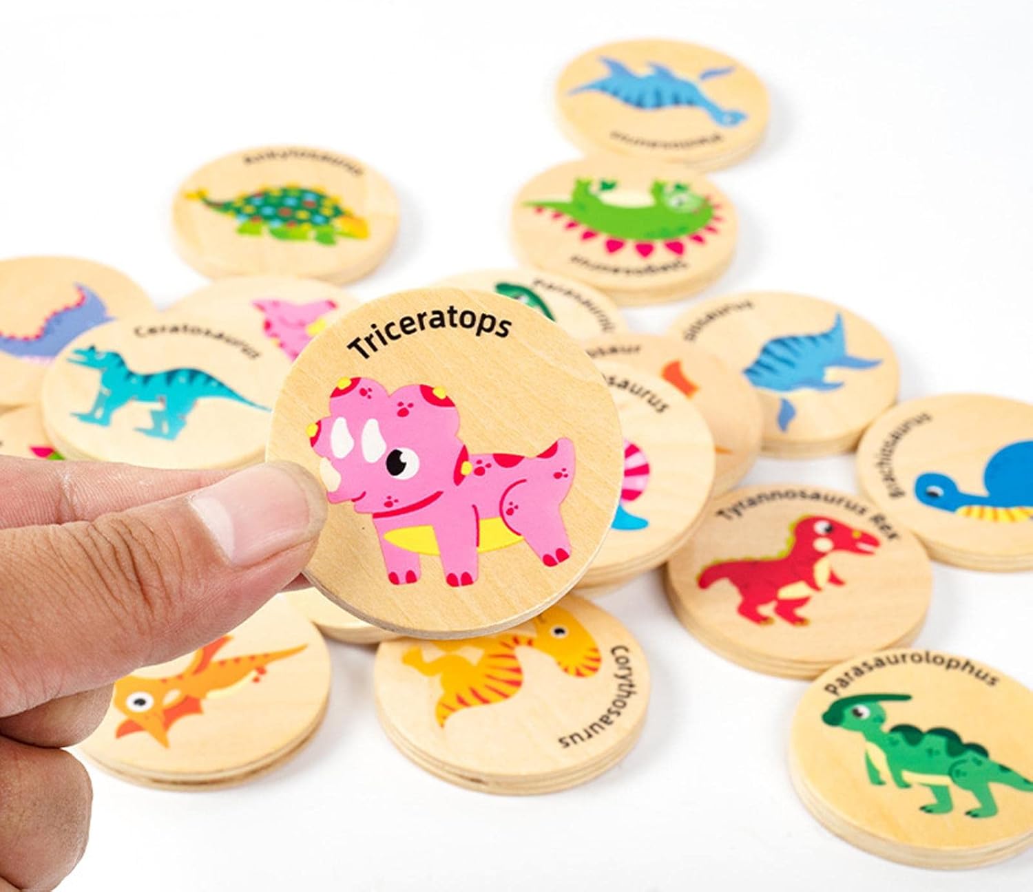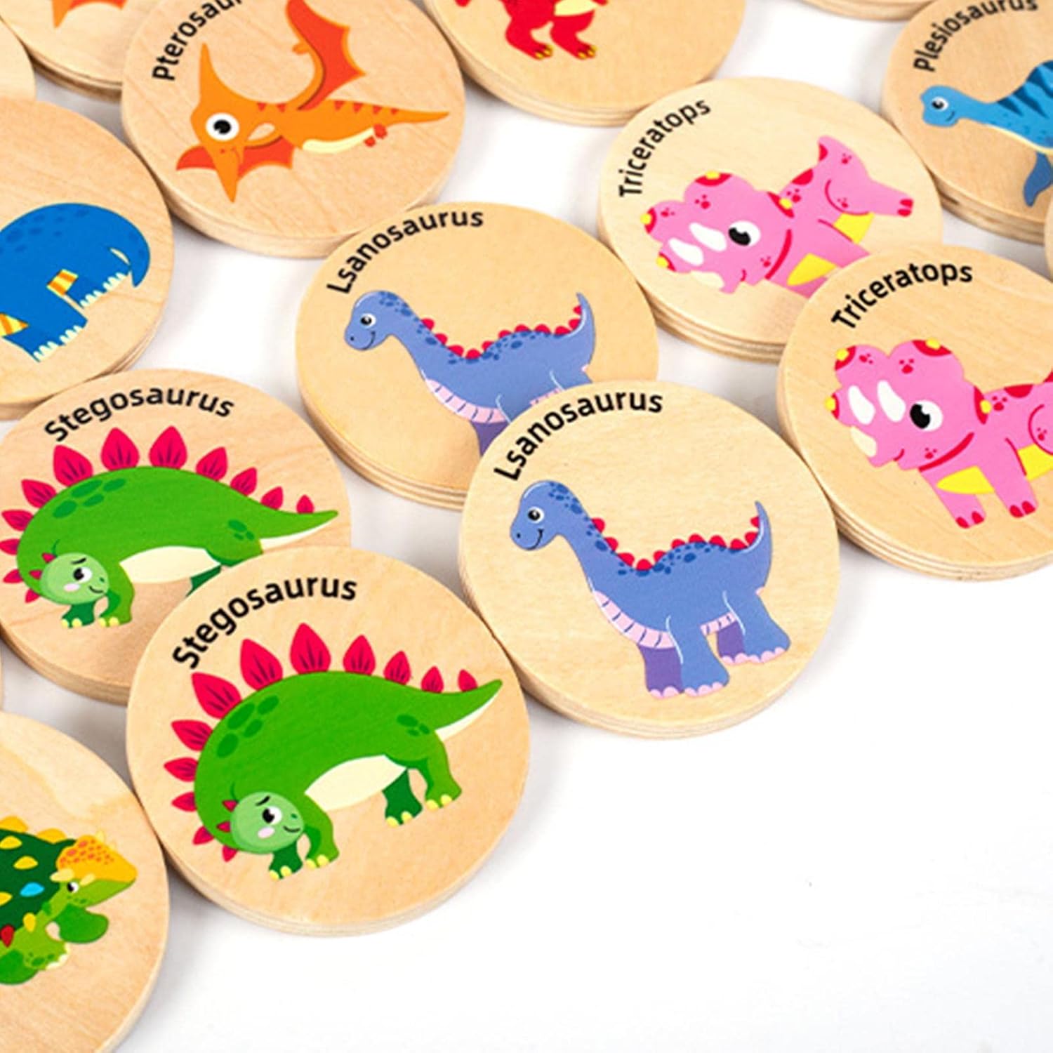 LT467 DREWNIANA ZABAWA W DINOZAURY GRA MEMORY GRA PAMIĘĆ ŁĄCZENIE W PARY