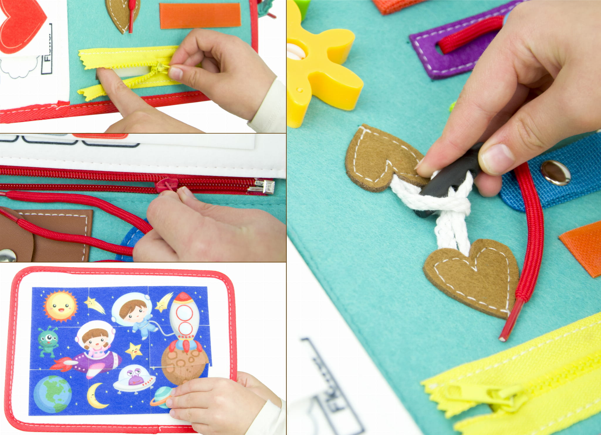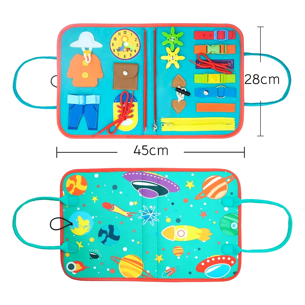 TABLICA MANIPULACYJNA / TABLICA SENSORYCZNA / ZABAWKA MONTESSORI / UNIWERSALNA / TABLICA MOTYW KOSMOS / MATERIAŁOWA / DLA DZIECI / NAPISY SĄ W JĘZYKU ANGIELSKIM