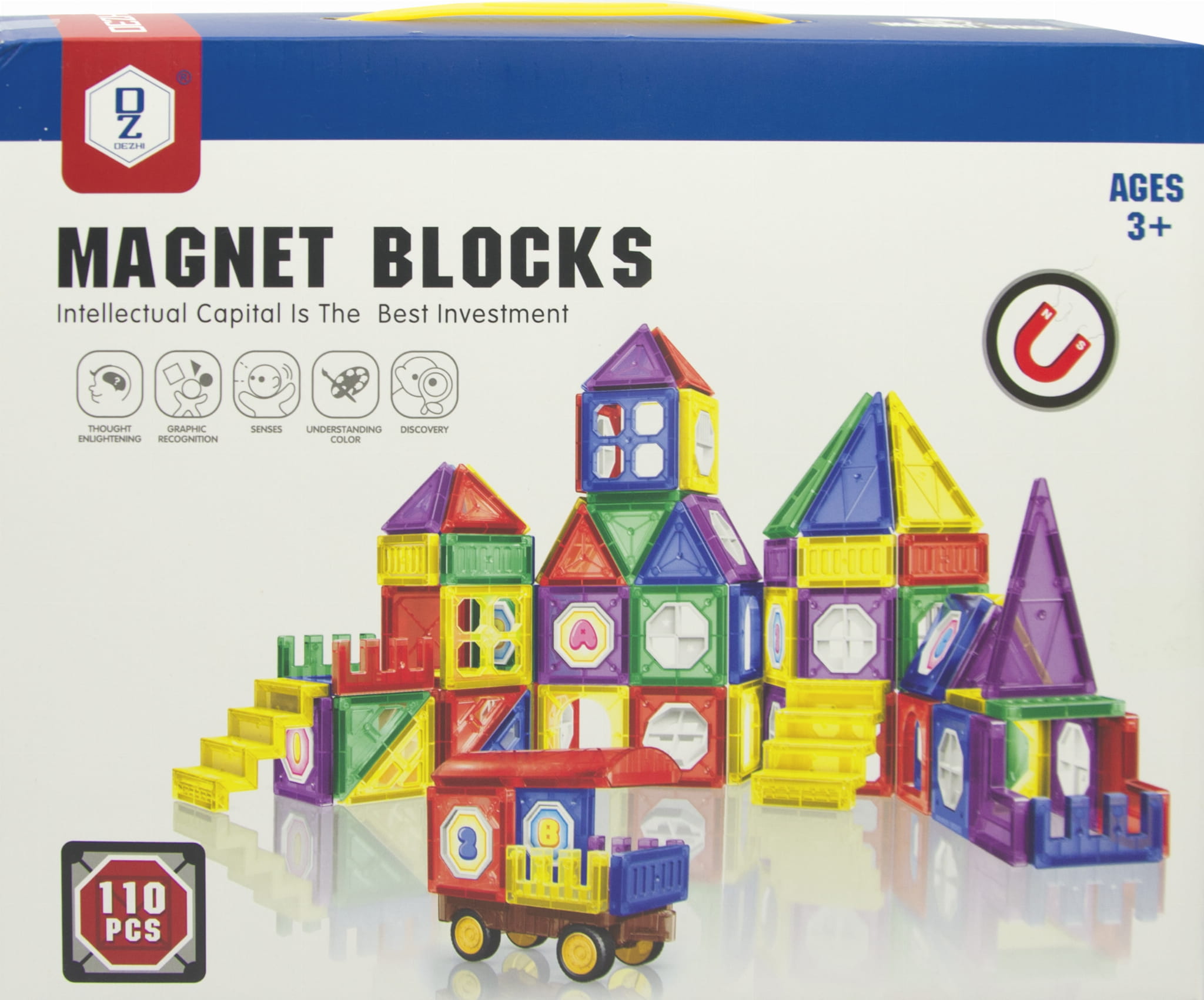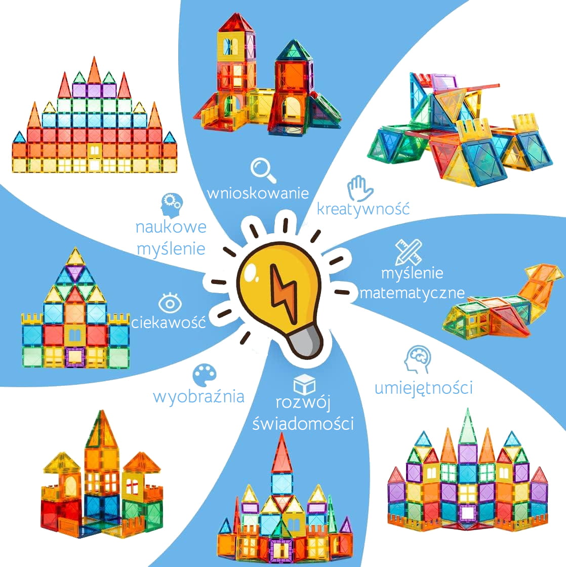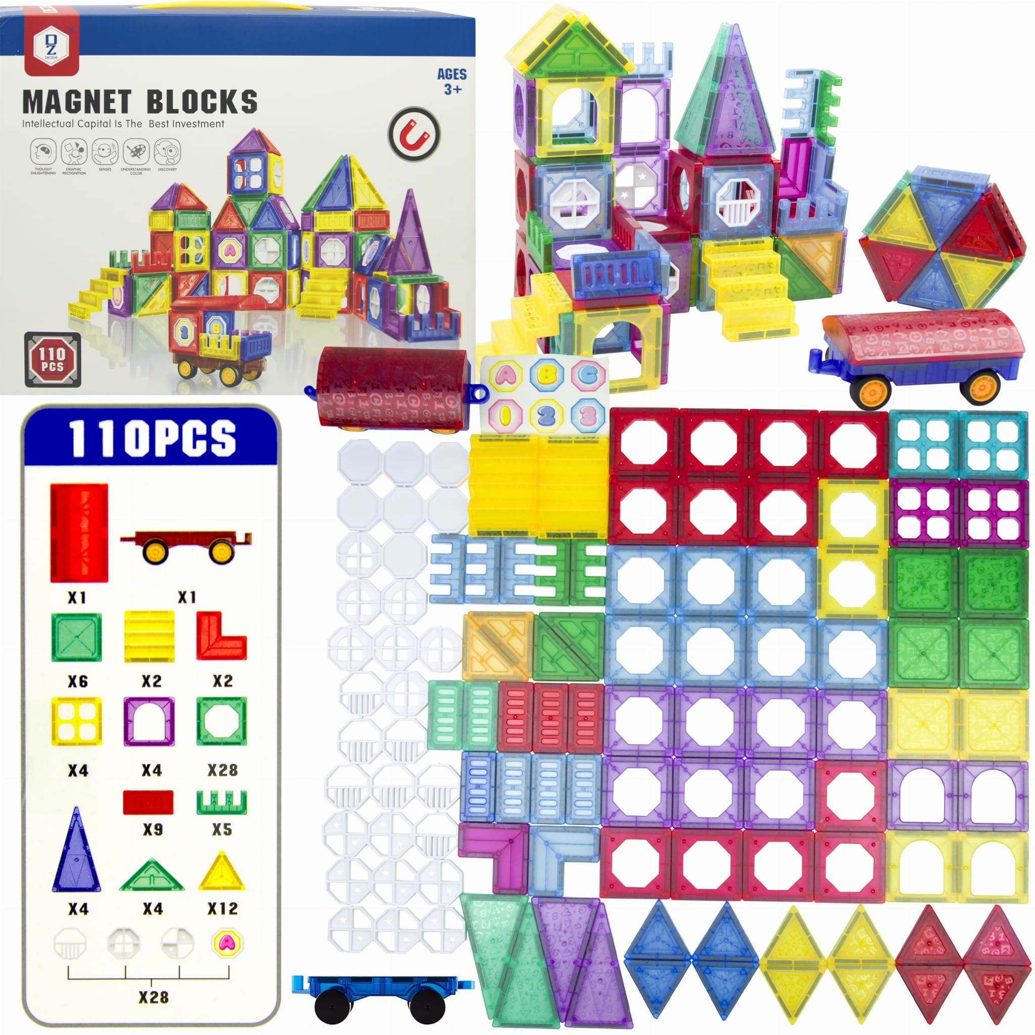 KLOCKI KONSTRUKCYJNE / KREATYWNY ZESTAW / KLOCKI MAGNETYCZNE / W ZESTAWIE 110 ELEMENTÓW / DUŻE PANELE / BUDOWANIE W 2D I 3D / KREATYWNY ZESTAW