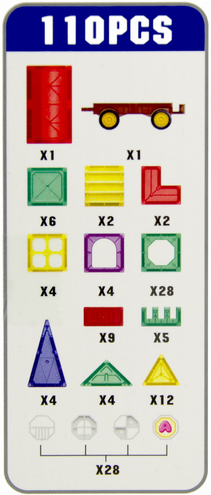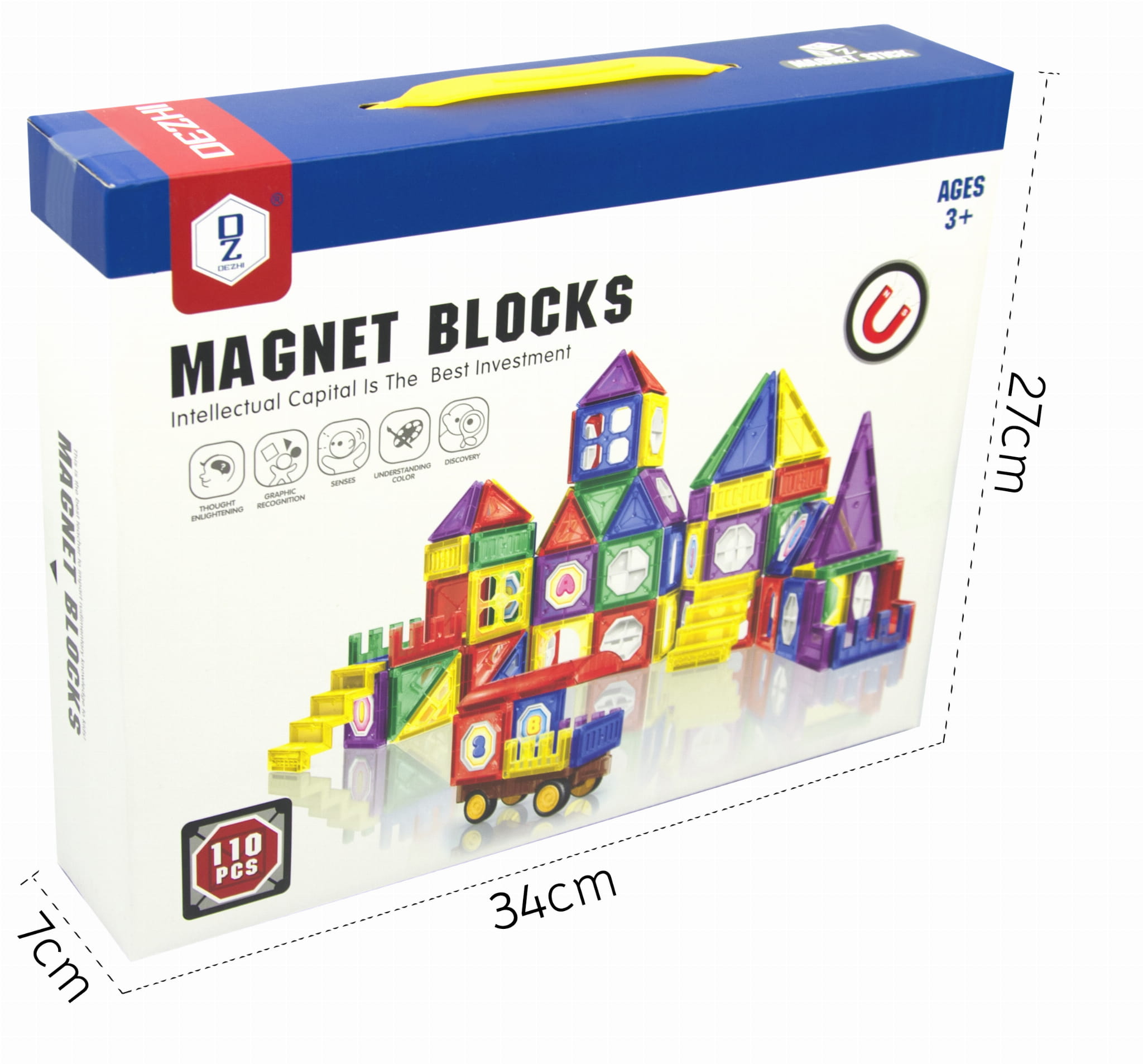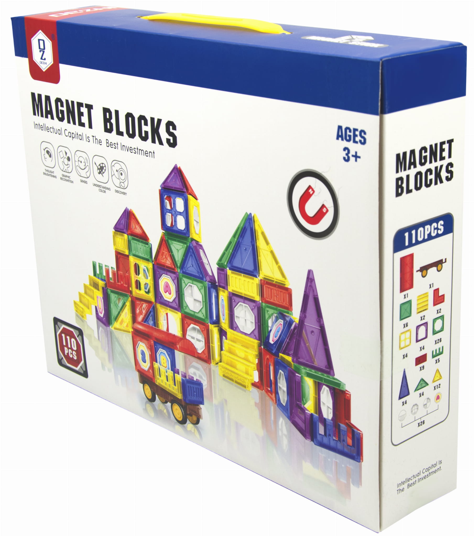 KLOCKI KONSTRUKCYJNE / KREATYWNY ZESTAW / KLOCKI MAGNETYCZNE / W ZESTAWIE 110 ELEMENTÓW / DUŻE PANELE / BUDOWANIE W 2D I 3D / KREATYWNY ZESTAW