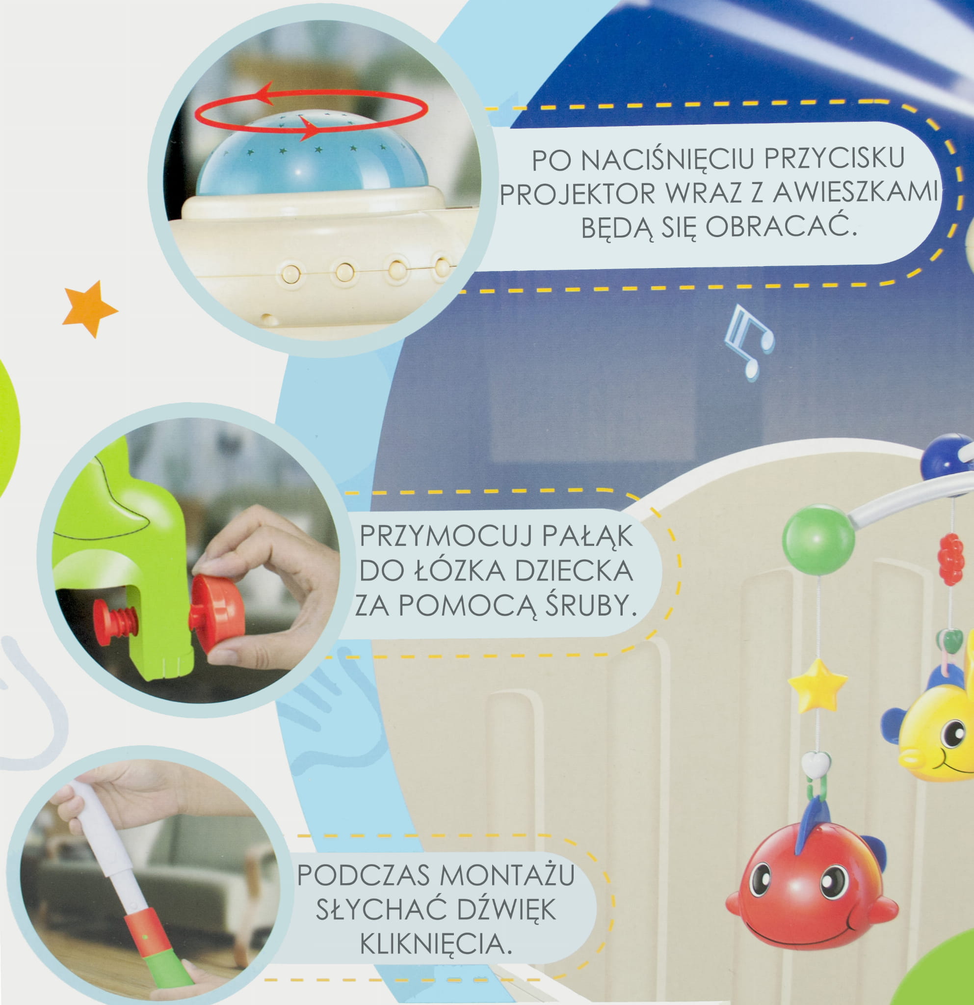LT68 LANDTOYS KARUZELA Z PROJEKTOREM Z RYBKAMI DO LOZECZKA DLA DZIECI/