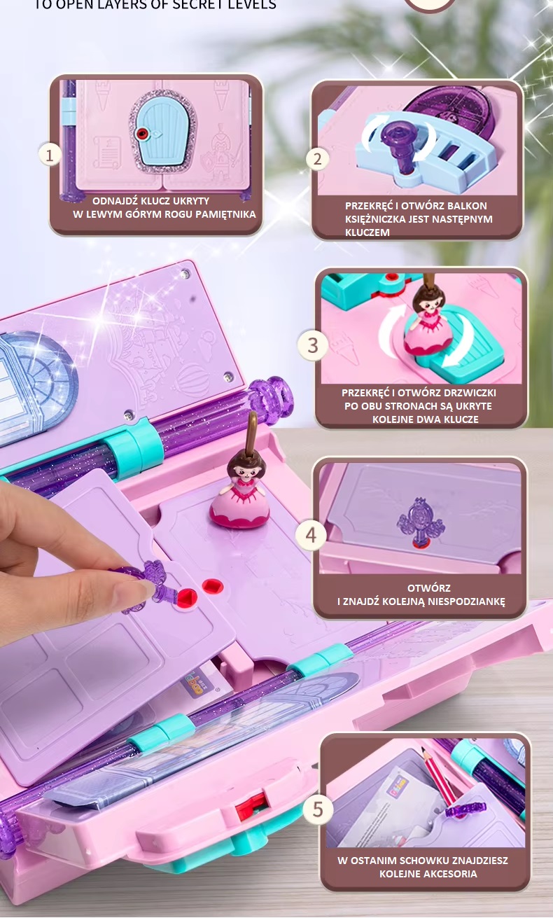 MAGICZNY SEKRETNY PAMIĘTNIK ZAMEK NA KLUCZYK ZE SCHOWKAMI ZESTAW DLA DZIECI