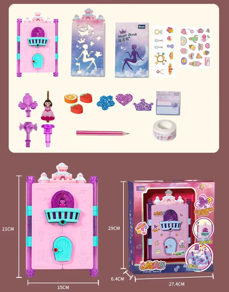 Nasz zestaw z magicznym pamiętnikiem dla dziewczynek zawiera linijkę, notes, naklejki, klucze, gumki, ołówek, karteczki samoprzylepne i taśmę. Idealnie nadaje się do podróży. Wszystkie akcesoria są przechowywane w jednym miejscu. Ten dziewczęcy pamiętnik z zamkiem i kluczami to doskonały prezent na wiele okazji.